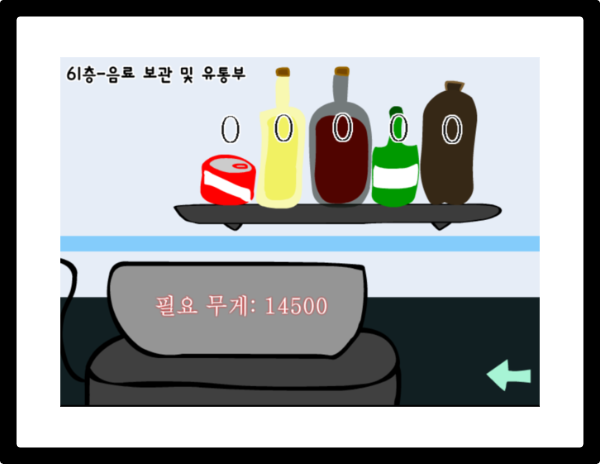 61층 음료 보관 및 유통부입니다 필요 무게를 넣어야 합니다 맞춰야 되는 무게는 14500입니다 순서는 이렇습니다