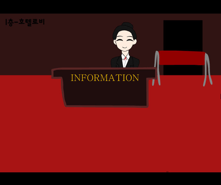 처음 호텔 데스크에 입장을 하면 안내를 하는 곳에 어떤 여자가 서 있습니다 말을 걸어 줍니다 아래쪽에 있는 순서대로 선택을 하시면 됩니다