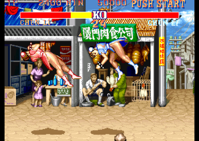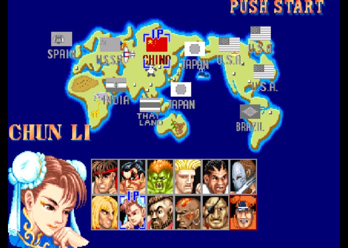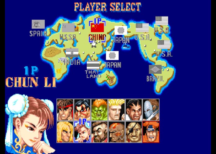 이 게임은 각국에 나오는 스트리트파이터들을 상대로 승리하는 게임입니다 저는 캐릭터 선택창에서 춘리를 골랐습니다 역시 스트리트파이터를 생각하며 춘리나 류를 많이 고르실겁니다 각 나라의 캐릭터들의 생김새는 특이하고 기술도 다 다르기 때문에 여러 가지 기술들을 익히기 위해서는 많은 시간이 필요합니다