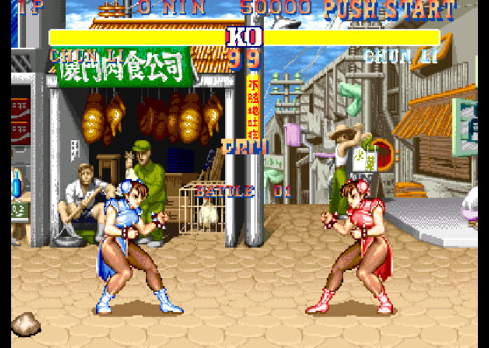게임이 시작됐습니다 저의 첫번째 상대는 저와 같은 캐릭터 춘리입니다 춘리는 필살기가 부실하기는 하지만 기본기가 다른 캐릭터의 비해서 섬세하고 연타를 할 수 있기 때문에 다른 캐릭터와 차별을 두는 캐릭터입니다 각 캐릭터마다 특징이 있기 때문에 모든 캐릭터들을 플레이하여 캐릭터의 특징들을 찾아보세요 그럼 좀 더 재미있게 플레이할 수 있습니다