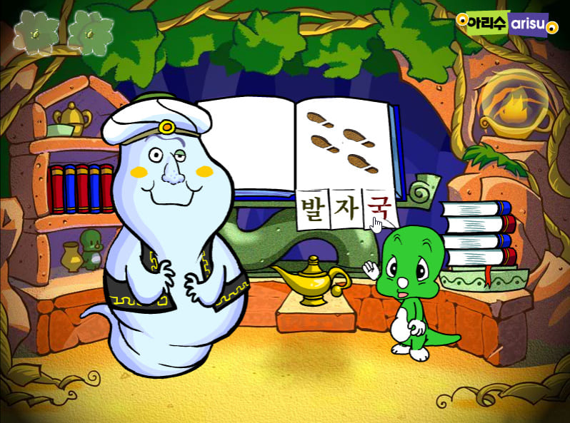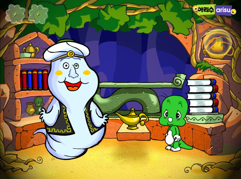 게임 방법 : 재미있는 이야기를 듣기 위해 지니를 불러냈습니다 책에 있는 글자를 하나씩 지니에게 주면 다양한 재미있는 이야기를 들을 수 있습니다