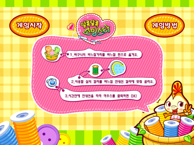 - 바구니의 바늘질거리를 바느질 판으로 옮겨요