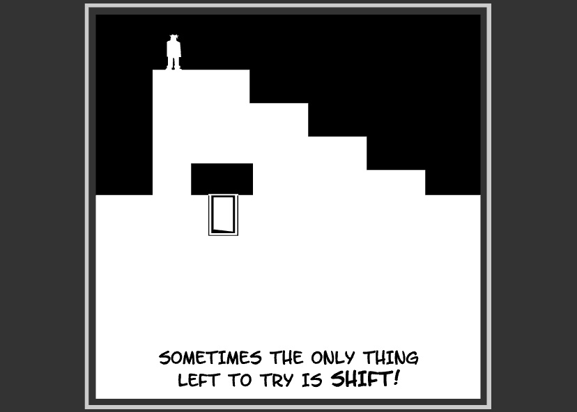 쉬프트를 눌러서 상하반전을 통해 퍼즐을 풀어나가시면 됩니다 쉬프트를 누르면 상하반전이 쉽게 되는데 옆으로 전진을 하여 장애물들을 피하고 퍼즐을 풀어서 최종적으로 문에 들어가게 되시면 다음 레벨로 넘어갈 수 있습니다 이것 외에도 열쇠를 먹게 되면 열쇠와 연결된 다리가 상호작용이 일어나서 작동이 일어날 수도 있고 다양한 환경들과 상호작용을 통해 게임을 클리어하시면 됩니다