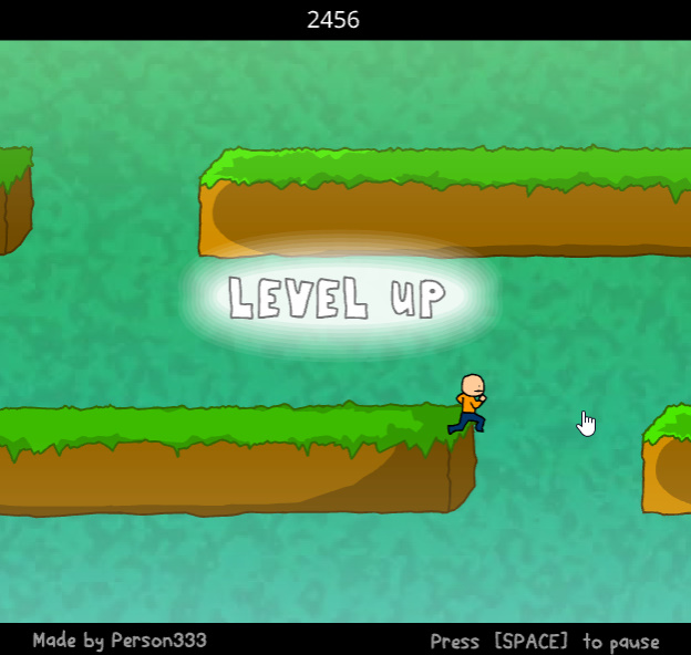 게임방법 : 쉼 없이 올라가는 지형들을 뛰어내려서 아래로 빠르게 달려나가시면 됩니다 위쪽에는 시간에 비례하여 점수가 오르고 점수가 어느정도 올라가게 되면 레벨도 오르게 됩니다