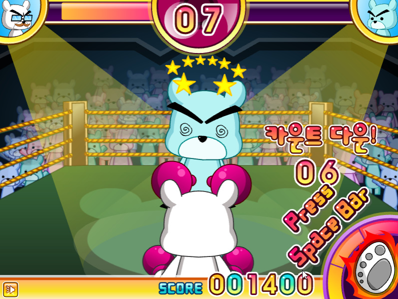 게임 방법 : 곰씨가 링 위에 섰어요 새롭게 등장하는 적들을 쓰러트려 보세요