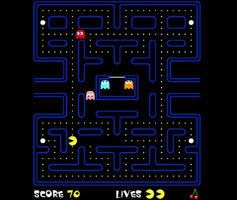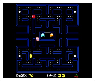게임 플레이: 플레이어는 팩맨을 조종하여 미로 내의 모든 점을 먹어야 하며, 동시에 네 종류의 유령(블링키, 핑키, 잉키, 클라이드)을 피해 다녀야 합니다