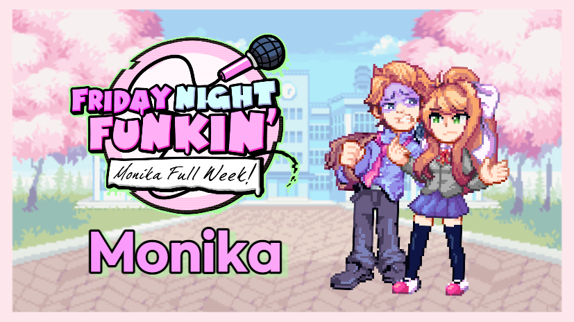 두근두근 문예부를 프나펌에 적용시켜 처음에는 스킨을 입히는 모드로 나왔지만 시간이 흘러 FULL WEEK가 공개되면서 프나펌 모니카 모드는 인기가 급속도로 높아졌다 이 모드에서는 총 4곡이 나오는데 High School Conflict, Bara No Yume, Your Demise, Your Reality가 있다