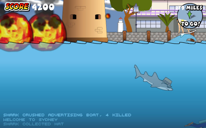 상어게임으로써 바다에 사는 모든 생물의 포식자입니다 또한 하늘을 나는 비행기와 새 그리고 수영을 하고 있는 사람들까지 모두 공격할 수 있습니다 다소 폭력적인 장면들이 묘사되어있어 게임을 하실 때 주의해주시기 바랍니다
