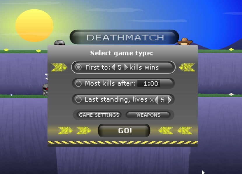 데스매치에서는 경기규칙을 자신만의 스타일 대로 정할 수 있으며 컴퓨터의 AI 난이도도 조정할 수 있는 자유로운 모드입니다 최대 6명이 동시에 데스매치를 할 수 있으며 오래 살아남거나 제한 킬을 다 한 사람 그리고 쓰러뜨린 횟수가 많은 사람이 이기는 경기 규칙이 있습니다