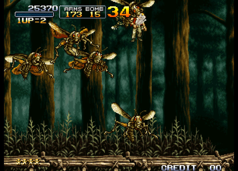 시리즈 세 번째로 출시된 메탈슬러그3 입니다 메탈슬러그는 횡스크롤 총 게임으로써 전작인 x와 2를 바탕으로 난이도가 상당히 올라간 작품입니다 2에서는 이동하면서 적을 갉아먹는 플레이가 가능했다면 3에서는 강제로 미션을 진행해야 되기 때문에 이러한 야매 플레이 행위가 사라졌습니다