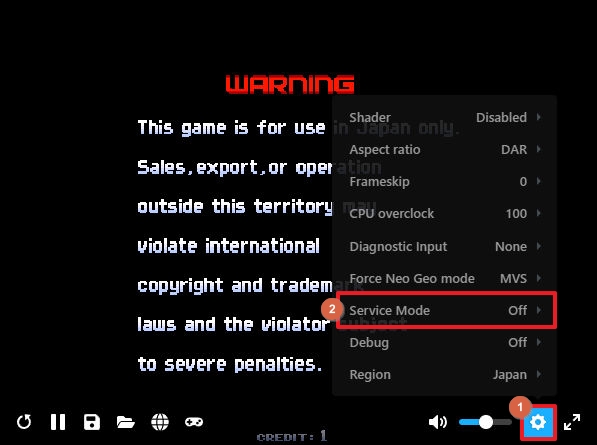 톱니바퀴 모양을 클릭해서 "Service Mode"에 들어갑니다 OFF -> ON 으로 바꿔줍니다