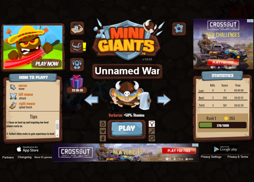 미니 자이언트 온라인 멀티게임입니다 자신의 미니자이언트를 제어하고 다른 플레이어와 전투를 벌여 보상을 받으시면 됩니다 여러 클래스 중 선택하여 플레이할 수 있고 레벨이 올라감에 따라 더 크고 강력해지기 때문에 더 많은 전리품을 획득하여 캐릭터를 더욱 강하게 만들 수 있습니다