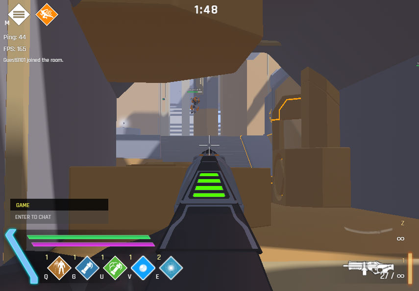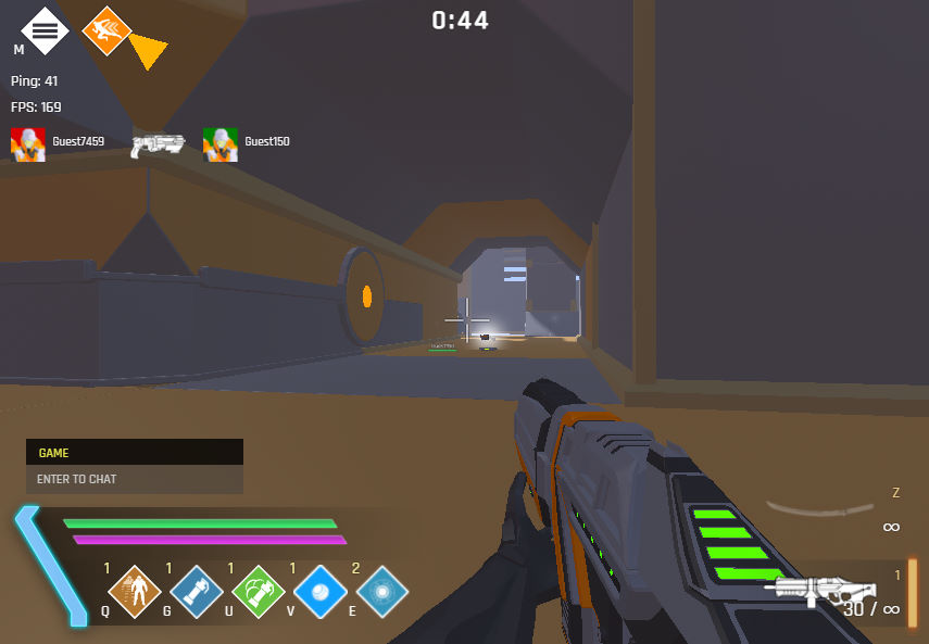 ev.io는 미래 지향적인 경기장을 배경으로 한 멀티 플레이어 fps 게임입니다 이 게임는 halo와 destiny및 quake와 유사한 레벨 디자인을 특징으로 합니다 플레이어는 전장에서 유리하게 사용할 수 있는 다양한 무기와 능력을 보유하고 있습니다 게임의 목표는 다양한 플레이어를 상대로 전장에서 승리하시면 됩니다