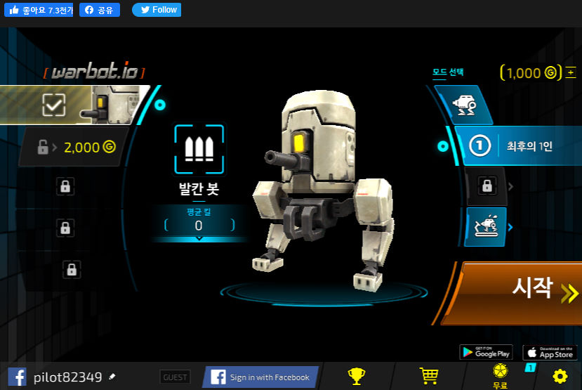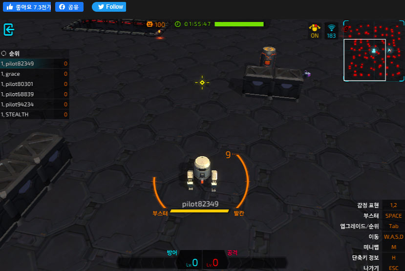 워봇아이오는 치열한 멀티플레이어 로봇 전투를 펼치는 멀티 아이오게임입니다 플레이하고 싶은 게임 모드를 선택하고 준비해주세요 게임에서 당신은 경기장의 다른 로봇을 제거해야 하는 것이 목표입니다 흩어져 있는 파워업 아이템을 모아 로봇을 더 강력하게 만들 수 있습니다 레벨을 올리면 랜덤 퍽을 얻을 수 있고 얻는 금을 사용하여 더 강력한 로봇도 구입할 수 있습니다