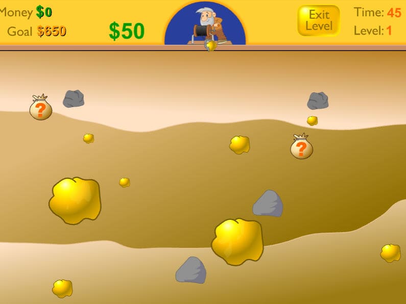 골드 마이너 플래시 게임입니다 할아버지가 위에서 갈고리를 이용하여 아래에 있는 금들을 가져오는 게임입니다 각 레벨마다 요구하는 골드가 존재하기 때문에 골드를 다 채우면 다음 레벨로 넘어가는 방식입니다 레벨이 끝나면 게임에 도움을 주는 아이템도 구매할 수 있습니다 물픔표에는 골드를 포함하여 다양한 아이템도 포함되어 있습니다