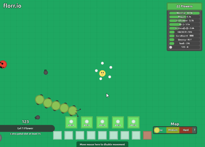 꽃을 조종하여 맵 안에 있는 벌레들을 잡아 성장해 나가는 멀티 웹 게임입니다 몹을 죽이거나 상대방을 죽여서 경험치를 얻어 성장해 나갈 수 있습니다 15, 30, 45레벨 마다 폐탈 슬롯이 하나씩 추가되며 바꿀 수 있습니다