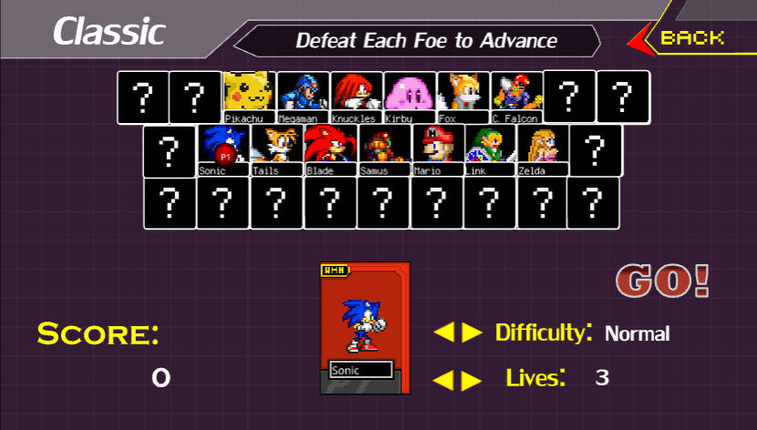 다른 게임 속에 등장하는 캐릭터를 조종하여 상대와 맞붙는 슈퍼 스매시 플래시 버전의 게임입니다 게임 속에 등장하는 캐릭터는 13명이고 캐릭터의 종류는 아래와 같습니다