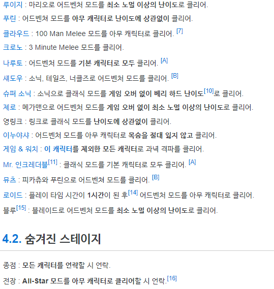 ▣ 캐릭터 & 스테이지 해금조건 (출처 나무 위키)