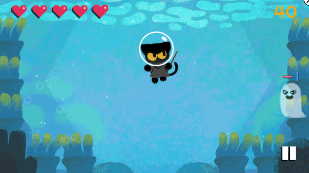 구글 할로윈 게임 중에서 가장 유명한 게임 중 하나입니다 이 게임을 사람들이 "구글 고양이 게임"이라고 부르고 있으며 게임의 방법은 주변에 몰려오는 유령들의 위 쪽 "선 모양" 을 잘 보고 마우스로 그대로 그어주기만 하면 유령들을 하나씩 제거할 수 있게 됩니다 맵 안에 존재하는 모든 유령들을 없애는 방식의 게임입니다