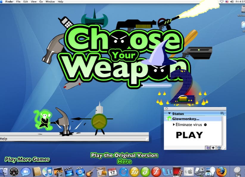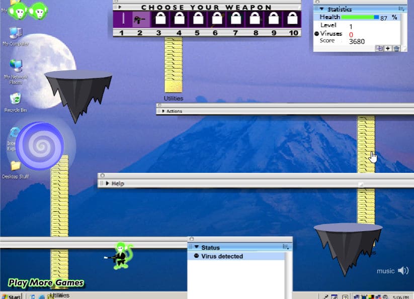 스틱맨 바이러스의 두 번째 시리즈입니다 게임의 방법은 컴퓨터 속에 있는 스틱맨 바이러스들을 모두 물리치면 다음 레벨로 넘어가는 방식의 플래시 게임입니다 총 10가지 무기들이 존재하기 때문에 다양한 무기들을 이용해 스틱맨 바이러스들을 물리쳐보세요