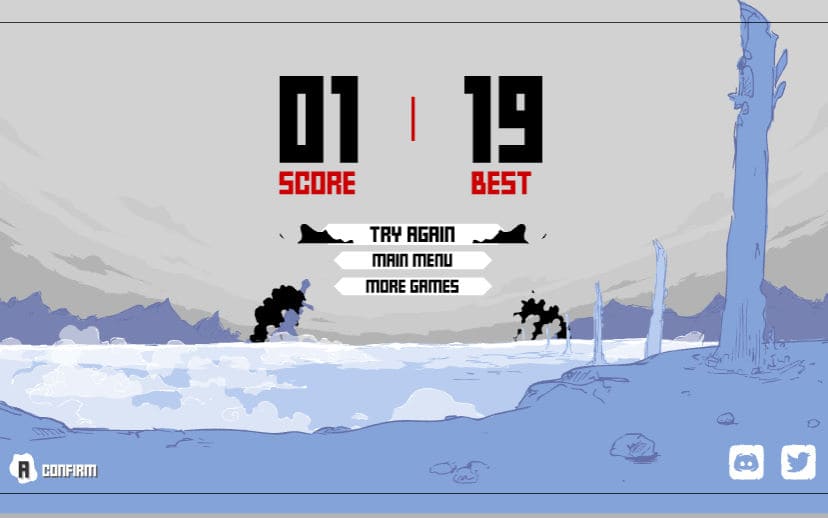 반대로 적들에게 공격을 한 번이라도 당하게 된다면 플레이어는 그 즉시 게임에서 패배하게 되고 자신의 점수를 확인할 수 있습니다 (많은 점수를 기록하는 기록 깨기 게임이라고 할 수 있습니다) 또한 화면 중간에 보이는 화살과 공격 아이콘이 없다면 공격이 제한이 됩니다