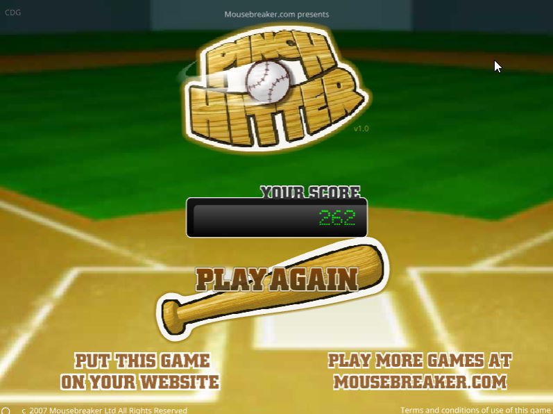 핀치히터 게임은 투수 쪽에서 날아오는 공을 쳐서 점수를 얻어내는 방식의 야구 게임이며 10번의 기회를 모두 날리게 되면 게임에서 패배하게 됩니다 또한 홈런을 칠 때마다 기회는 1번씩 늘어나게 되고 기회를 모두 날리게 되면 자신의 최종 점수를 부여받을 수 있습니다