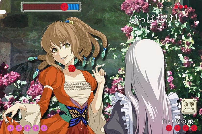 장미와 동백 4번째 작품은 파타 모르가나 저택이라는 게임과 콜라보레이션한 작품이라고 합니다 은발소녀를 주인공으로 5명의 캐릭터들과 뺨때리기를 하여 승리하는 것이 목표입니다 게임을 시작하기 전 난이도를 5개의 단계로 나눠서 설정할 수 있습니다