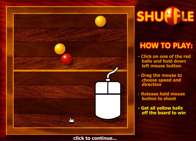 구슬치기 게임입니다 마우스를 이용하여 구슬의 방향을 선택해주신 후 마우스를 잡아당겼다가 놓으면 구슬이 날아가게 되고 판 위에 있는 상대방의 모든 구슬을 제거하게 되면 다음 레벨로 넘어갈 수 있습니다 그리고 판 위에 남은 구슬의 개수만큼 스코어로 기록이 되니 구슬 하나하나 신경 써서 날리는 것이 중요합니다