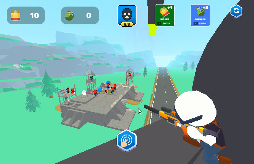해당 게임은 맵 안에 있는 적들을 마우스로 조준을 하여 모두 제거하면 되는 스나이퍼 게임입니다 다양한 레벨이 존재하며 해당 레벨에서 모든 적들을 제거하는 것이 이 게임의 목표입니다 적은 총알의 개수로 모든 적들을 제거하면 더 많은 레벨 점수를 얻을 수 있습니다 주변에 있는 사물을 잘 활용하시면 사물을 이용해서 암살도 가능합니다