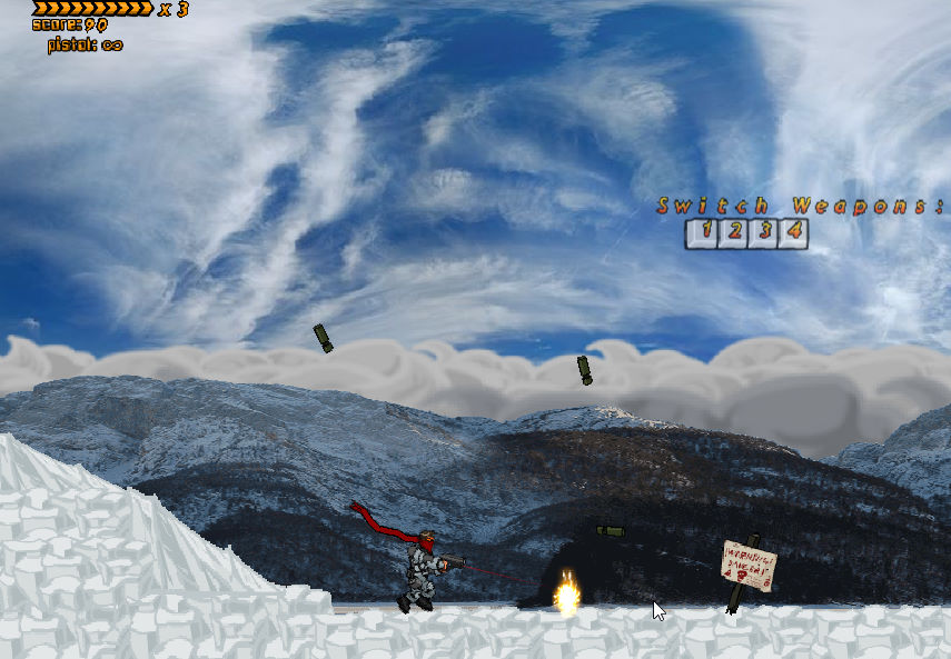 런앤건 총쏘기 플래시게임으로써 주변 환경을 조심해서 자신을 공격하는 적들을 모두 제거하는 것이 목표인 게임입니다 다양한 레벨이 존재하고 게임의 난이도는 노말과 이지 중 선택하여 게임을 플레이할 수 있습니다 Start를 누르면 게임을 시작할 수 있습니다