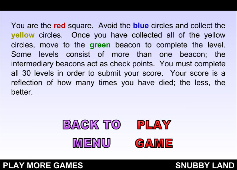 세상에서 가장 어려운 게임 두 번째 시리즈입니다 장애물에 부딪히지 않고 초록색 발판까지 안전하게 도달하시면 됩니다 (50 레벨까지 존재합니다) 조작키 - 방향키 1. 세상에서 가장 어려운 게