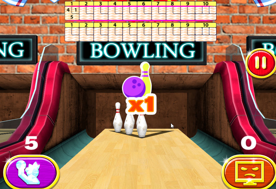 각 플레이어는 교대로 마우스를 통해 볼링공을 쏘고 원하는 방향을 겨냥해서 많은 핀을 쓰러트려야 되는 게임입니다 라운드가 끝날 때 가능한 많은 볼링 핀을 쓰러뜨리는 플레이어가 승리하게 됩니다
