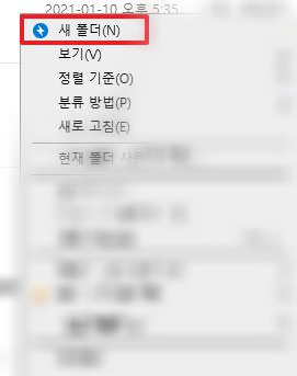아무곳이나 클릭하셔서 새폴더(n)를 눌러줍니다