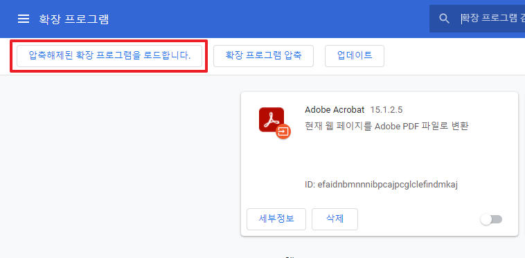 chrome://extensions/ 을 크롬 검색창에 적으신 후 엔터를 눌러주시면 됩니다