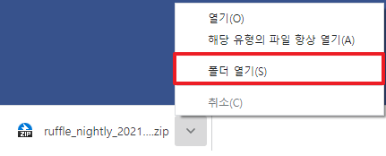 폴더열기를 하시면 ruffle_nightly_2021_01_10_extension라는 파일이 있는데요