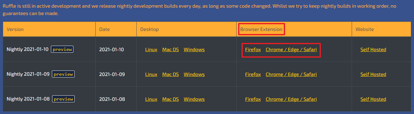 2. ruffle 다운로드 방법