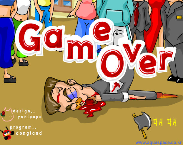 게임오버가 되면 다시다시를 눌러서 게임을 재시작할 수 있습니다