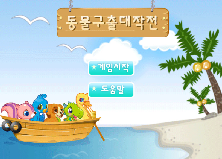 수영을 못하는 동물 친구들을 구출해 주세요 여객선에서 동물을 클릭 한 후 드래그 하여 배에 태웁니다