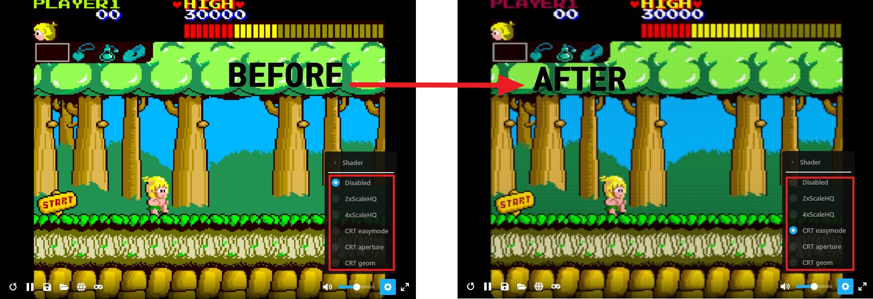 게임 화면을 "옛날 CRT 화면" 으로 바꿔서 플레이 가능합니다 ▼