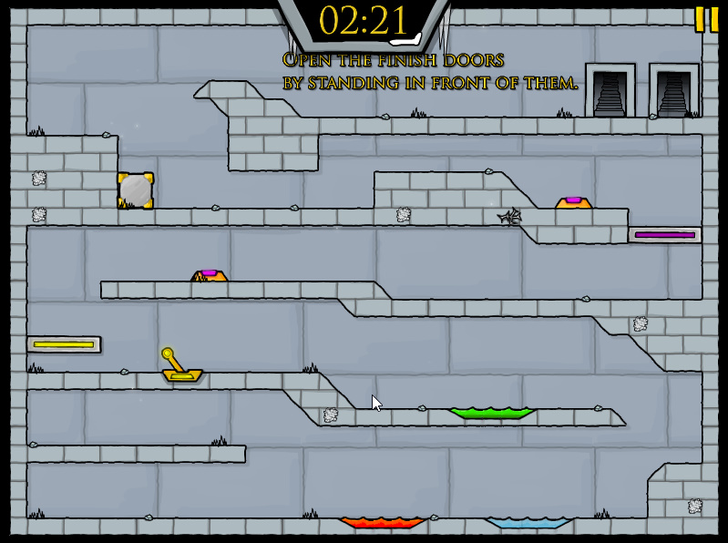 그리고 상자같이 생긴 박스를 밀어서 벽에 붙힌 후 올라가서 게임을 클리어해주시면 됩니다 앞에 문을 파이어보이 앤 워터걸 캐릭터에 맞게 서주시면 게임이 클리어됩니다